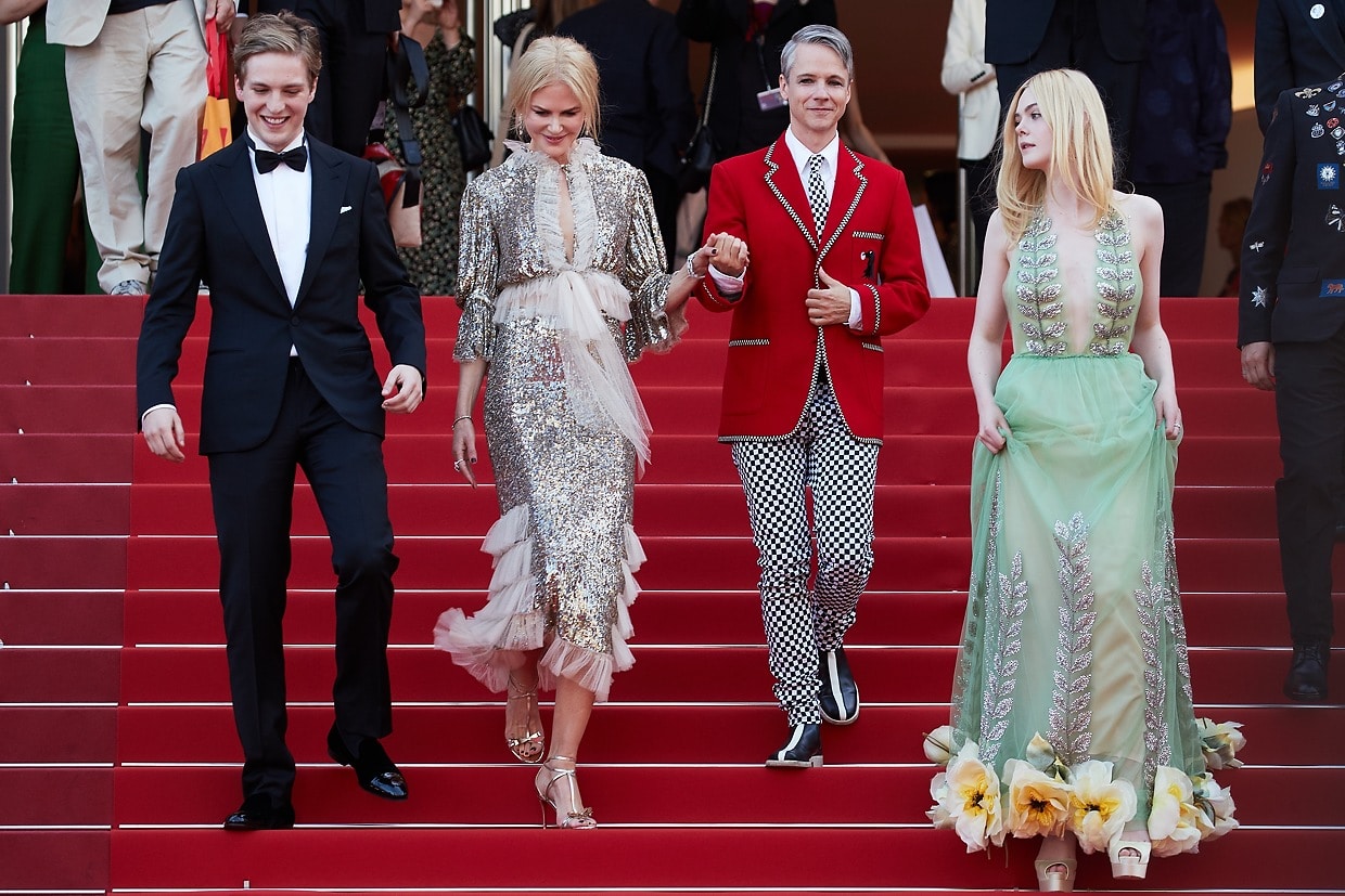 Авраам Льюис, Николь Кидман, Джон Камерон Миткел, Эль Фаннинг спускаются по красной дорожке после просмотра фильма 'How To Talk To Girls At Parties'.