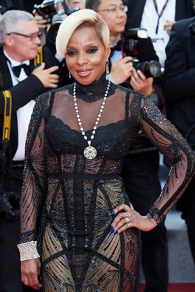Американская певица в жанрах R&B, соул и хип-хоп, автор песен, музыкальный продюсер и актриса Мэри Джей Блайдж на красной дорожке фильма "Истории семьи Майровиц" (The Meyerowitz Stories)