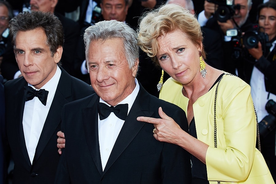 Бен Стиллер, Дастин Хоффман и актриса Эмма Томпсон на красной дорожке фильма "Истории семьи Майровиц" (The Meyerowitz Stories)